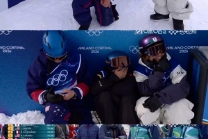 默契蘇翊鳴奪金前,和亞軍季軍因緊張蹲在一起“抱團取暖”