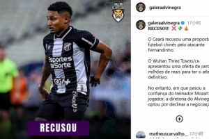 武漢三鎮(zhèn)俱樂部為簽下這名球員,提出了一份約400 萬巴西雷亞爾(約合520萬人民幣)的永久轉(zhuǎn)會報價。不過,鑒于球隊主帥對費爾南迪尼奧的高度信任,塞阿拉俱樂部管理層最終決定拒絕此次轉(zhuǎn)會談判。
