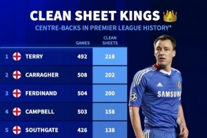 體育資訊2月20日訊 德國(guó)轉(zhuǎn)會(huì)市場(chǎng)統(tǒng)計(jì)了英超歷史中衛(wèi)零封的場(chǎng)次,并列出榜單,特里218場(chǎng)居首,卡拉格、費(fèi)迪南德二三位。