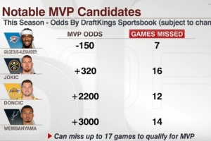 約基奇 +320(押注100,若中連本帶利得420) 目前缺席16場