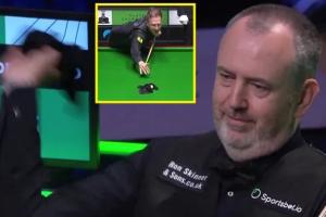 在比賽最后一局,特魯姆普123-0領(lǐng)先時(shí),馬克·威廉姆斯出人意料地拿起了身邊的毛巾,朝球臺(tái)丟去,毛巾精準(zhǔn)命中了特魯姆普準(zhǔn)備擊打的白球。特魯姆普先是一驚,隨后作勢(shì)要隔著毛巾來擊打白球,不過比賽在現(xiàn)場觀眾的笑聲中結(jié)束。