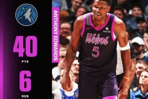 體育資訊2月21日訊 NBA常規(guī)賽,森林狼122-111力克獨(dú)行俠。愛德華茲出戰(zhàn)38分鐘,30中16,三分13中5,罰球4中3砍下40分6籃板1助攻1搶斷,正負(fù)值+17!