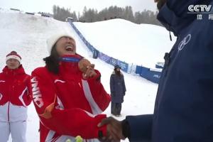 賽后頒獎(jiǎng)儀式上,徐夢(mèng)桃笑著用英語向頒獎(jiǎng)嘉賓調(diào)侃:這是我的第一枚奧運(yùn)會(huì)銅牌。