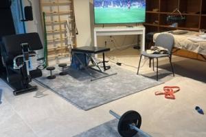 比賽中他更新社媒,曬出自己在健身房看比賽的圖片,配文:第二節(jié)課,同時看比賽。加油,球隊(duì)!