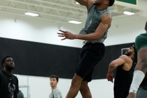 體育資訊2月22日訊 今日雄鹿球星字母哥曬出訓練暴扣照。