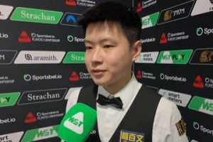 趙心童: 對。其實整場比賽我跟馬克·艾倫都打得不是特別理想。我覺得今天的球臺速度有點慢,所以我跟馬克·艾倫在很多走位上面都走得不是特別順利。所以到最后其實我們都不是以最好的狀態(tài)在進行這場比賽,但我很高興能拿下這場比賽。