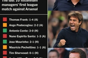 體育資訊2月22日訊 本輪英超將迎來焦點戰(zhàn)阿森納對陣熱刺,圖多爾也迎來上任后首秀。
