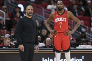 火箭球迷:范弗里特?問題比那嚴(yán)重多了。想象一下,在整整一節(jié)的時(shí)間里,除了杜蘭特單打之外,根本組織不起任何其他的進(jìn)攻戰(zhàn)術(shù)。烏度卡在進(jìn)攻端簡(jiǎn)直一竅不通。