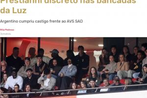 體育資訊02月22日訊 據(jù)葡媒《記錄報》報道,身陷種族歧視風波的普雷斯蒂安尼本輪葡超因累積黃牌停賽,但他仍現(xiàn)身光明球場,現(xiàn)場觀看球隊比賽。