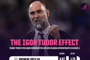 據(jù)統(tǒng)計(jì),圖多爾此前在意甲5次中途接手球隊(duì)后,戰(zhàn)績(jī)均有所提升,具體情況如下(場(chǎng)均積分變化):