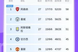 英超積分榜↓