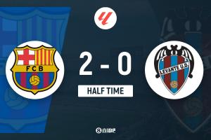 體育資訊2月23日訊 北京時(shí)間2月22日晚23時(shí)15分,2025-26賽季西甲第25輪在諾坎普球場(chǎng)展開角逐,巴塞羅那主場(chǎng)迎戰(zhàn)萊萬(wàn)特。上半場(chǎng)貝爾納爾4分鐘閃擊,德容收獲賽季首球,埃里克和坎塞洛助攻,霍安·加西亞救險(xiǎn),巴薩主場(chǎng)暫時(shí)2-0領(lǐng)先萊萬(wàn)特。