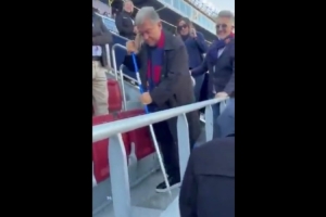 拉波爾塔主動拿起拖把,在諾坎普清理看臺并和球迷們進行交流。他在此前已經(jīng)主動辭職,從而為競選新任巴薩主席做準備。