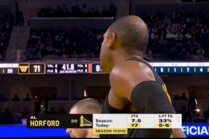 上半場(chǎng),勇士老將霍福德表現(xiàn)神勇,出場(chǎng)14分鐘8投6中,三分6中5砍下個(gè)人賽季新高17分外加1籃板4助攻2搶斷1蓋帽,正負(fù)值+14。