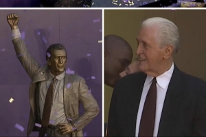 這場賽前,湖人為名宿帕特·萊利舉行雕像揭幕儀式,談到萊利,詹姆斯說:“他是這個(gè)聯(lián)盟有史以來最偉大的人物之一。不僅是作為球員、教練,還有管理層,方方面面都是。顯然,他在80年代為湖人隊(duì)所做的一切,那些都是毋庸置疑的傳奇,他也完全配得上在這座球館外擁有雕像。”