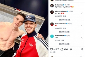 體育資訊2月23日訊 英超第27輪,阿森納客場4比1大勝熱刺,笑傲北倫敦德比。賽后,賴斯更新社媒曬出與約克雷斯合照,并盛贊了這位瑞典神鋒。