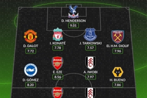 體育資訊2月24日訊 英超第27輪比賽已經(jīng)結(jié)束全部爭(zhēng)奪,WhoScored評(píng)選出了本輪比賽最佳陣,約克雷斯、埃澤入選,達(dá)洛特、科納特在列。