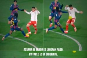 體育資訊02月25日訊 今日凌晨在西足協(xié)發(fā)布的裁判評議視頻中,西班牙裁判技術(shù)委員會(huì)回顧此前判罰,確認(rèn)巴薩1-2赫羅納一役中,赫羅納的第二粒進(jìn)球中存在判罰錯(cuò)誤。