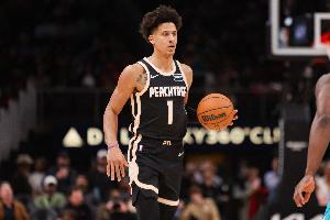本場比賽,杰倫·約翰遜出戰(zhàn)5分38秒,4投2中得到5分3籃板。
