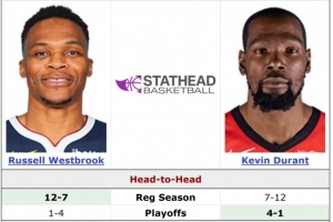 這將是杜蘭特和威少生涯第20次在常規(guī)賽交鋒,此前杜蘭特7勝12負落下風,季后賽杜蘭特4勝1負。