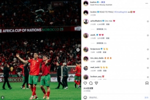 皇馬中場(chǎng)布拉欣·迪亞斯在本場(chǎng)比賽首發(fā)出戰(zhàn),他也在賽后通過社媒曬出和隊(duì)長(zhǎng)阿什拉夫的合照,并配文:“晉級(jí)決賽!”