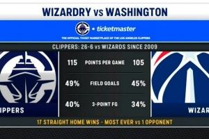 快船主場對陣奇才取得17連勝,是球隊(duì)主場對陣某個(gè)對手的最長連勝。