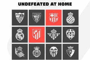 體育資訊1月15日訊 據西甲官方統(tǒng)計,巴薩和馬競是本賽季僅有的兩支西甲主場不敗球隊。