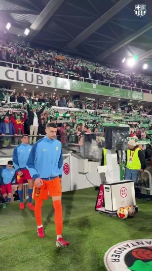 國王杯桑坦德競技vs巴塞羅那,賽前桑坦德為西超杯冠軍巴薩列隊(duì)