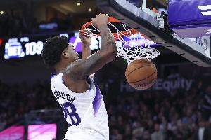 上一場(chǎng)比賽,森薩博砍下個(gè)人新高43分,兩場(chǎng)合計(jì)貢獻(xiàn)70分。
