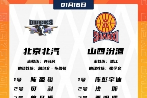 體育資訊1月16日訊 今晚19:35,北京主場迎戰(zhàn)山西,賽前大名單出爐。