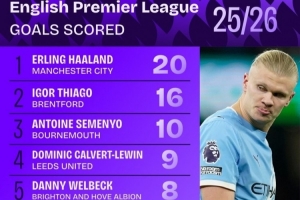 體育資訊1月10日訊 數(shù)據(jù)機(jī)構(gòu)squawka統(tǒng)計了本賽季英超進(jìn)球情況,哈蘭德壓伊戈爾·蒂亞戈居首。