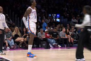 在下半場(chǎng),雷霆官方宣布杰倫威右大腿酸痛,不會(huì)回歸。
