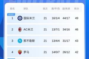 本輪后米蘭聯(lián)賽20輪不敗,距榜首國(guó)米3分。羅馬本輪后取得三連勝,他們距離第3那不勒斯僅1分。