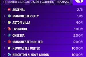 英超最新奪冠賠率: