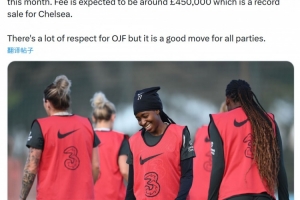 Nizaar Kinsella透露,維拉女足將在本月引進(jìn)切爾西女足中場(chǎng)弗朗索瓦,預(yù)計(jì)轉(zhuǎn)會(huì)費(fèi)約為45萬(wàn)英鎊,這將創(chuàng)造切爾西女足隊(duì)史出售球員最高轉(zhuǎn)會(huì)費(fèi)紀(jì)錄。