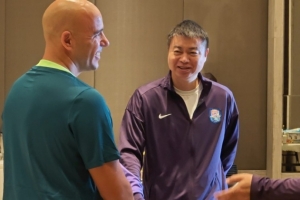 記者顧穎在個(gè)人微博寫道:葡萄牙籍教練費(fèi)利佩·佩德羅到??谡覈矆?bào)到了,剛才早餐時(shí)間,費(fèi)利佩到津門虎餐廳這邊打了個(gè)招呼,也遇上了主教練于根偉。