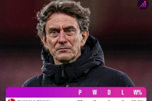 弗蘭克 22場(chǎng)7勝6平9負(fù),勝率31.8%