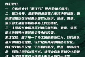 關(guān)于堅決反對“浙江FC”更名的聯(lián)合聲明